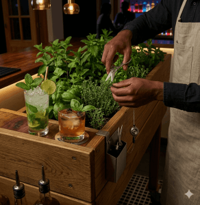 Le Wouly n’est pas conçu comme un bac de production. Il s’agit d’un mini-jardin destiné à apporter une touche fraîche et aromatique aux cocktails, pour la finition, la garniture ou les créations signature.